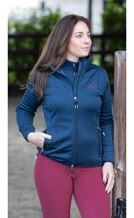Vest met een tweeweg-ritssluiting, twee zakken met een ritssluiting en het vest heeft een behaaglijke gelamineerde voering. EQS borduring met kristallen achterop de nek en EQS logo op de borst.