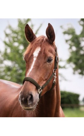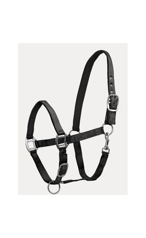 Zacht onderlegd halster. Meervoudig verstelbaar, Mat-kleurig beslag.