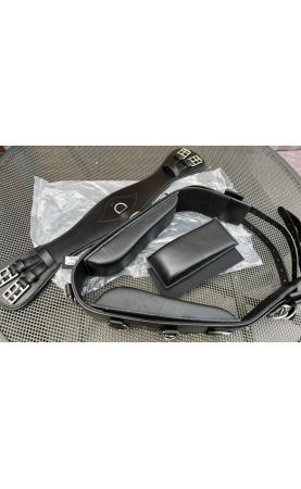 Voor de snelle beslisser....maar 1 set beschikbaar!! Erg luxe HKM leren longeersingel met bijbehorende leren anatomische dressuursingel van 70cm (singel kan natuurlijk ook met een zadel gebruikt worden), inclusief 2 sets dmv klittenband verwisselbare blokken. Voorzien van veel ringen.
