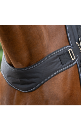 Met de Halifax 2-in-1 is het wisselen van de deken niet meer nodig. Dankzij het snel en eenvoudig vervangen van de borstriem kan de Halifax zowel als buitendeken als stapmolendeken (outdoor) gebruikt worden. Voor de laatste zijn er twee bevestigingsmogelijkheden voor de borstriem: de onderste sluiting is bijzonder geschikt voor smallere paarden. Of u nu de bovenste of onderste sluiting gebruikt, de Halifax 2-in-1 geeft uw paard de bewegingsvrijheid die het nodig heeft in de stapmolen of op de loopband. Dit comfort biedt niet alleen de stapmolendeken, maar ook de buitendeken: omdat de deken niet gesloten is in het schoudergebied, zoals bij conventionele buitendekens, heeft uw paard voldoende been- en schoudervrijheid zonder dat de deken strak om de schouders zit. De anatomisch gevormde ruglijn met een naar voren geplaatste schoft, staartflap en diepe staartriemen zorgen voor een perfecte pasvorm zonder afglijden. De diepere zijkanten van de Halifax 2-in-1 bieden extra bescherming voor de gevoelige buikstreek. De schoftvulling en het gladde binnenmateriaal bieden je paard het comfort dat het nodig heeft.